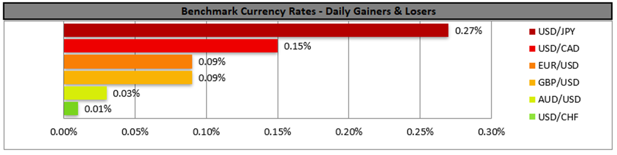 XAU/USD appears to be moving in an upwards fashion, having cleared our resistance turned back to support at the 4380 (S1) level. We opt for a bullish outlook for the commodity’s price considering the current break above our S1 level, yet for our bullish outlook to be maintained we would require gold’s price to remain above our S1 level if not also clearing our 4450 (R1) resistance line. On the other hand, for a sideways bias we would require gold’s price to remain confined between our 4380 (S1) support level and our 4450 (R1) resistance line. Lastly, for a bearish outlook we would require a clear break below our 4380 (S1) support level with the next possible target for the bears being our 4310 (S2) support line.