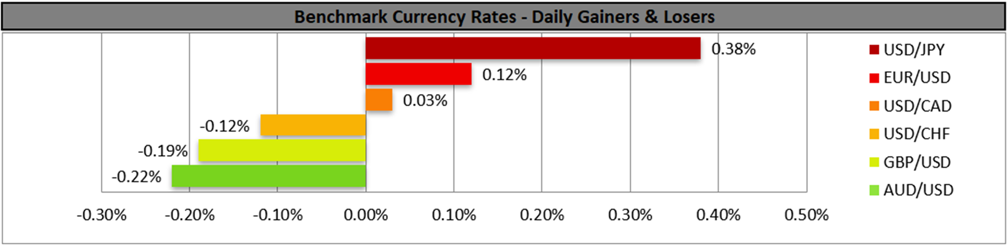 GBP/USD appears to be moving in a sideways fashion. We opt for a sideways bias for the pair and supporting our case is the pairs failure to clear our 1.3475 (R1) resistance level. For our sideways bias to be maintained we would require the pair to remain confined between our 1.3335 (S1) support level and our 1.3475 (R1) resistance line. On the other hand, for a bullish outlook we would require a clear break above our 1.3475 (R1) resistance line with the next possible target for the bulls being our 1.3625 (R2) resistance level. Lastly, for a bearish outlook we would require a clear break below our 1.3335 (S1) support level with the next possible target for the bears being our 1.3195 (S2) support line.
